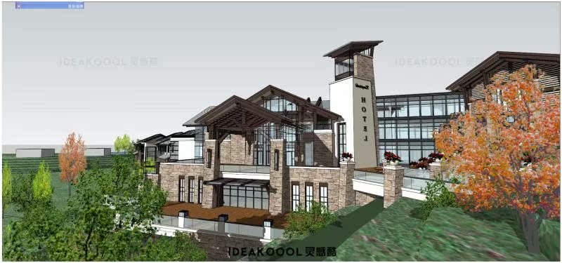 旅游度假村酒店建筑SU模型丨