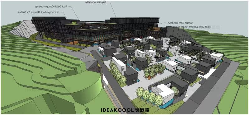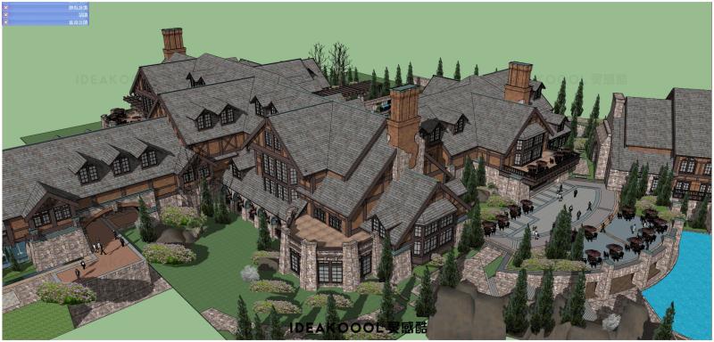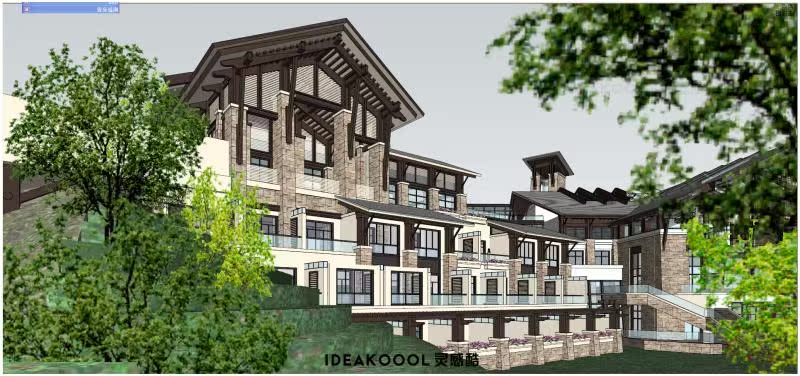 中式欧式现代山地酒店度假村温泉酒店民宿乡村建筑景观SU模型丨