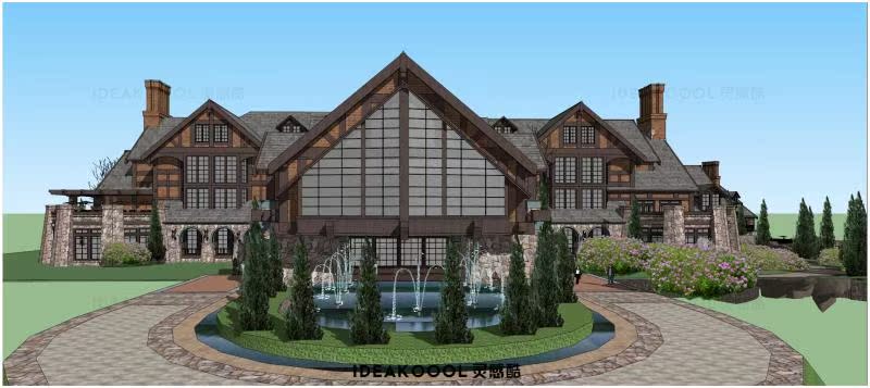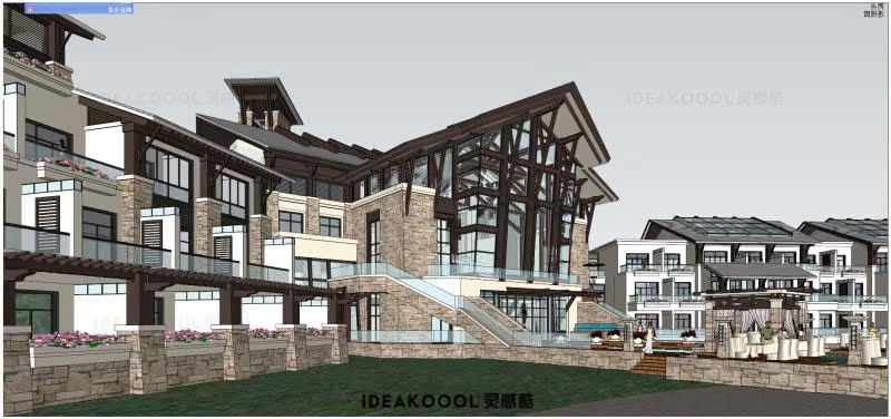 会所度假酒店民宿新中式亚洲英法欧式西班牙建筑SU模型丨