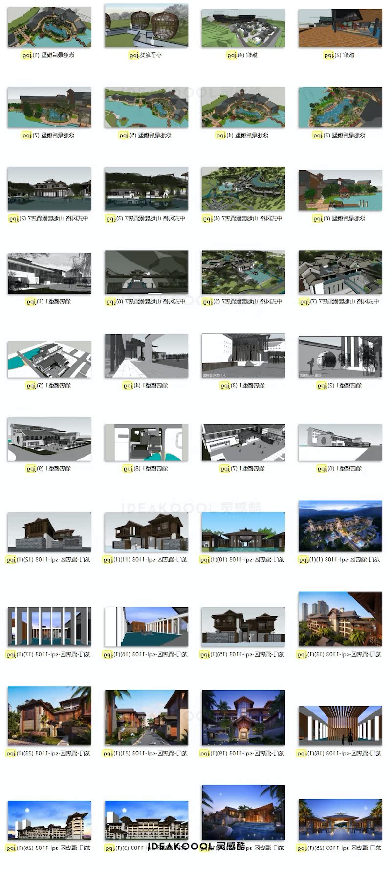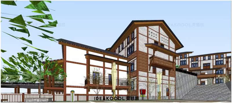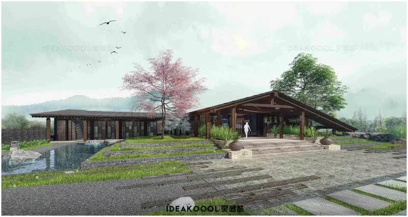 禅意新中式亚洲酒店旅游度假村会所客栈建筑SU模型丨