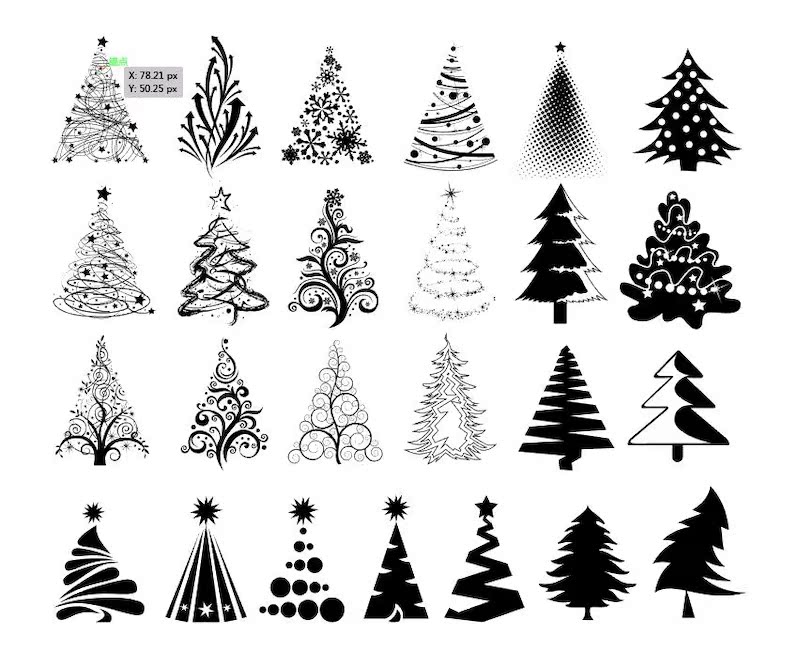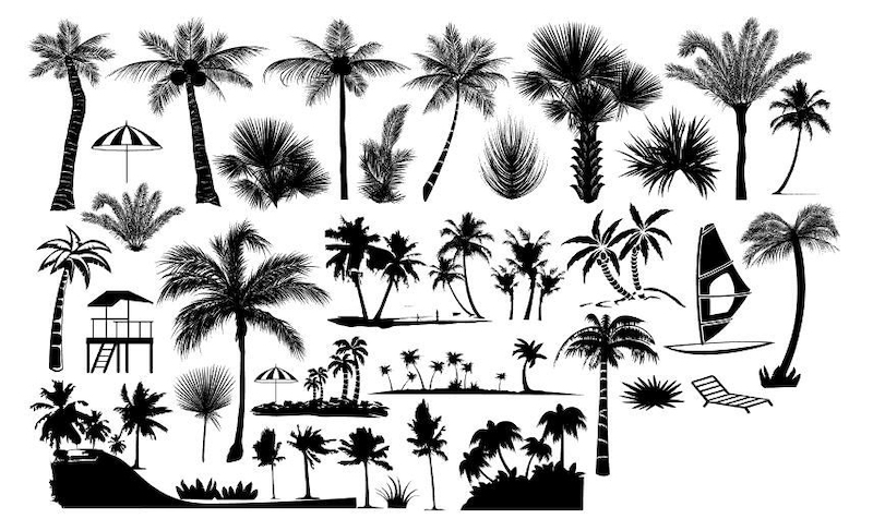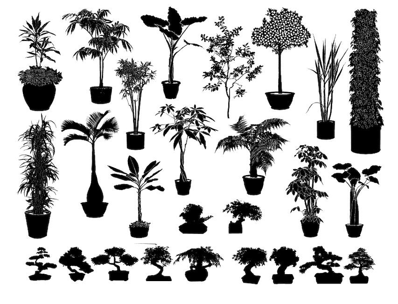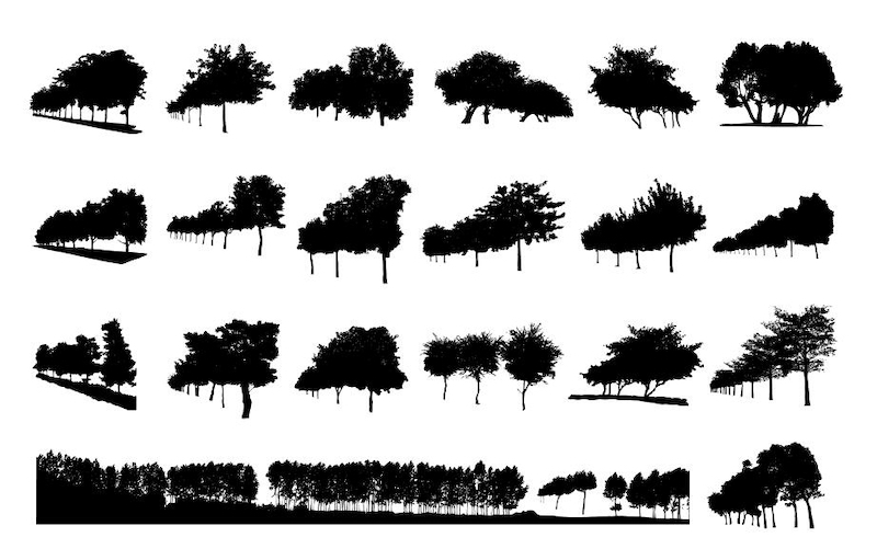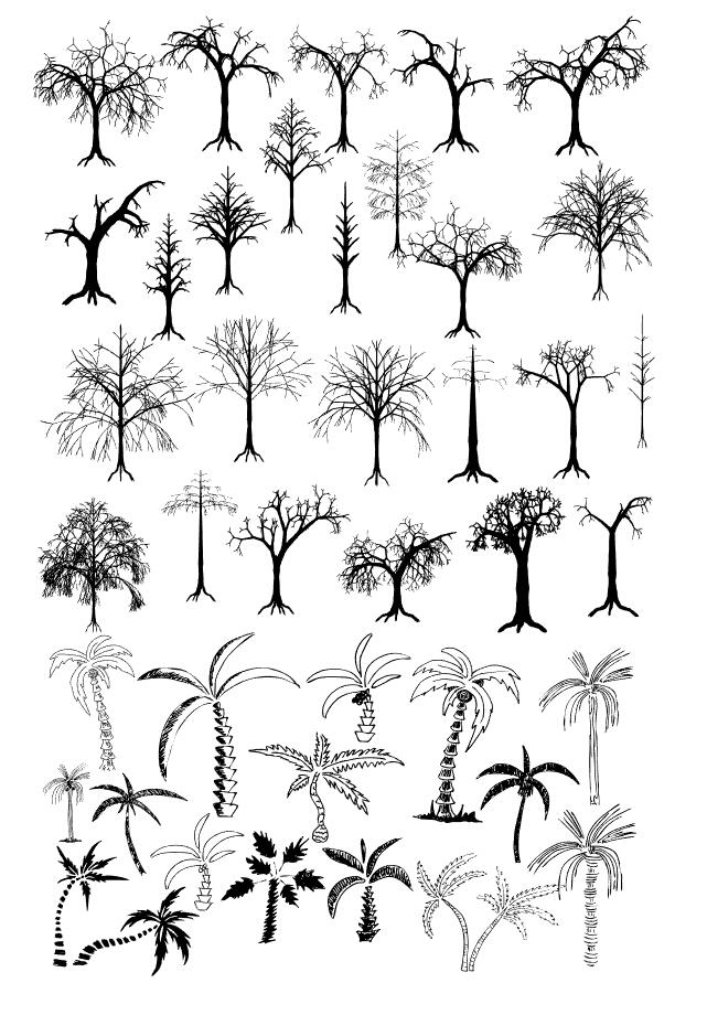 PNG免扣黑白剪影树乔木植物笔刷丨
