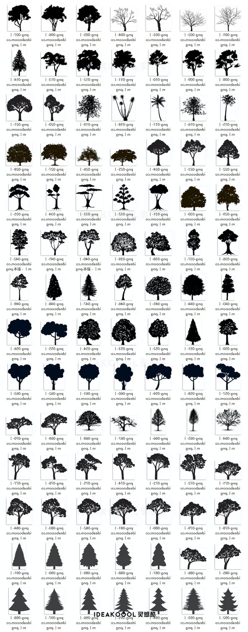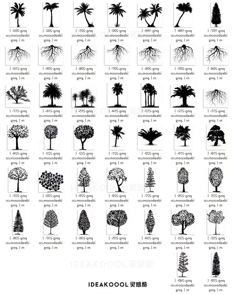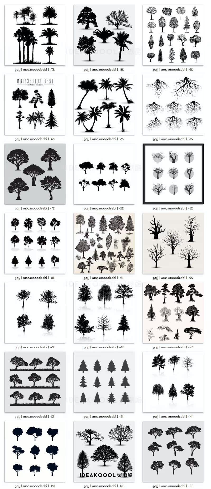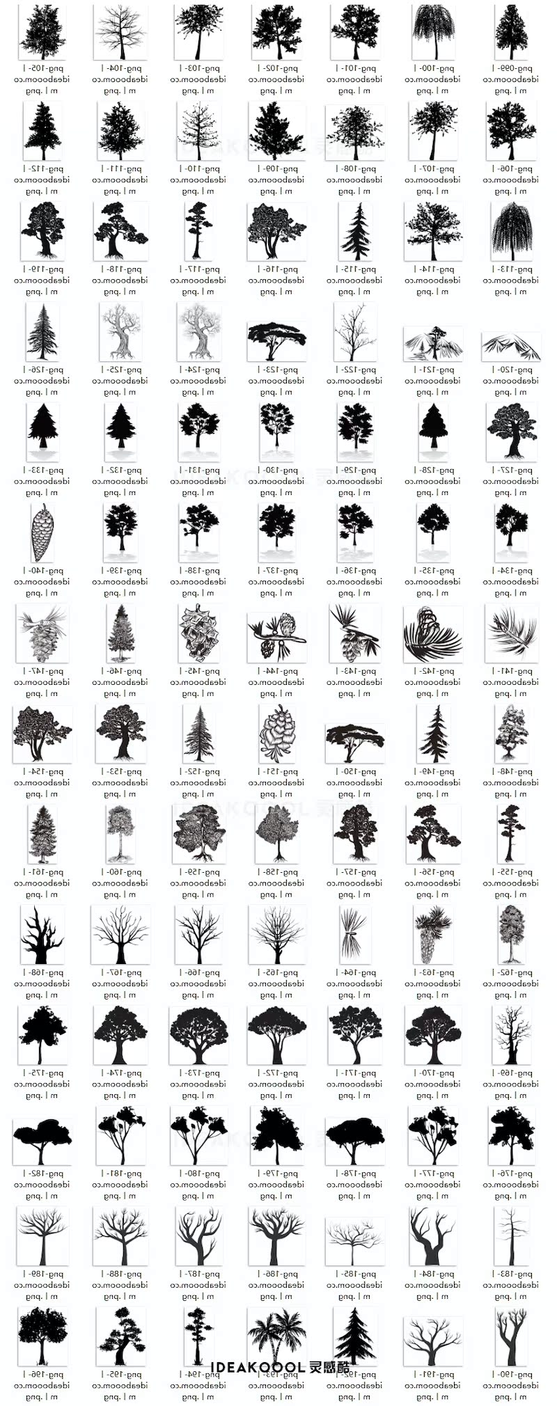 PNG免扣黑白剪影树乔木植物笔刷丨